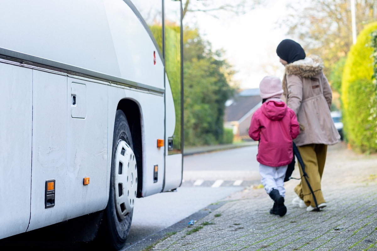 Kinderen uit Uithuizen komen met de bus. COA regelt dit vervoer.